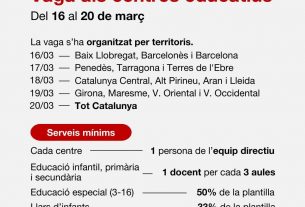 Pel que fa a les reivindicacions, els convocants demanen millores salarials, reducció de ràtios a les aules i més professionals de suport. També reclamen que l’aplicació del decret d’inclusió vagi acompanyada dels recursos humans i materials necessaris, i que es redueixi la càrrega administrativa que, segons expliquen, resta temps d’atenció directa a l’alumnat.